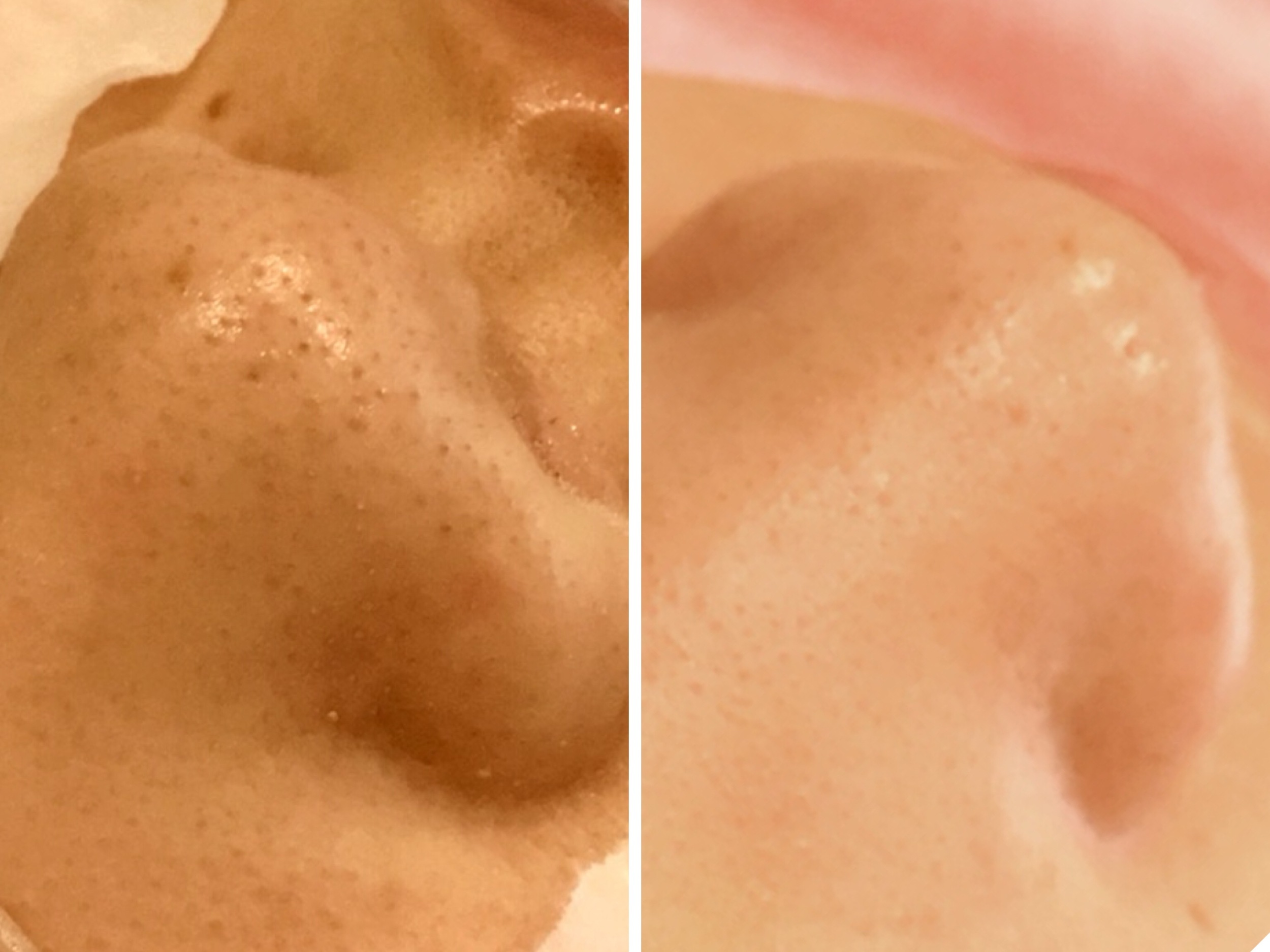 ザラつきや白いプツプツは1回でスッキリ取れて、小鼻がキュッキュします。