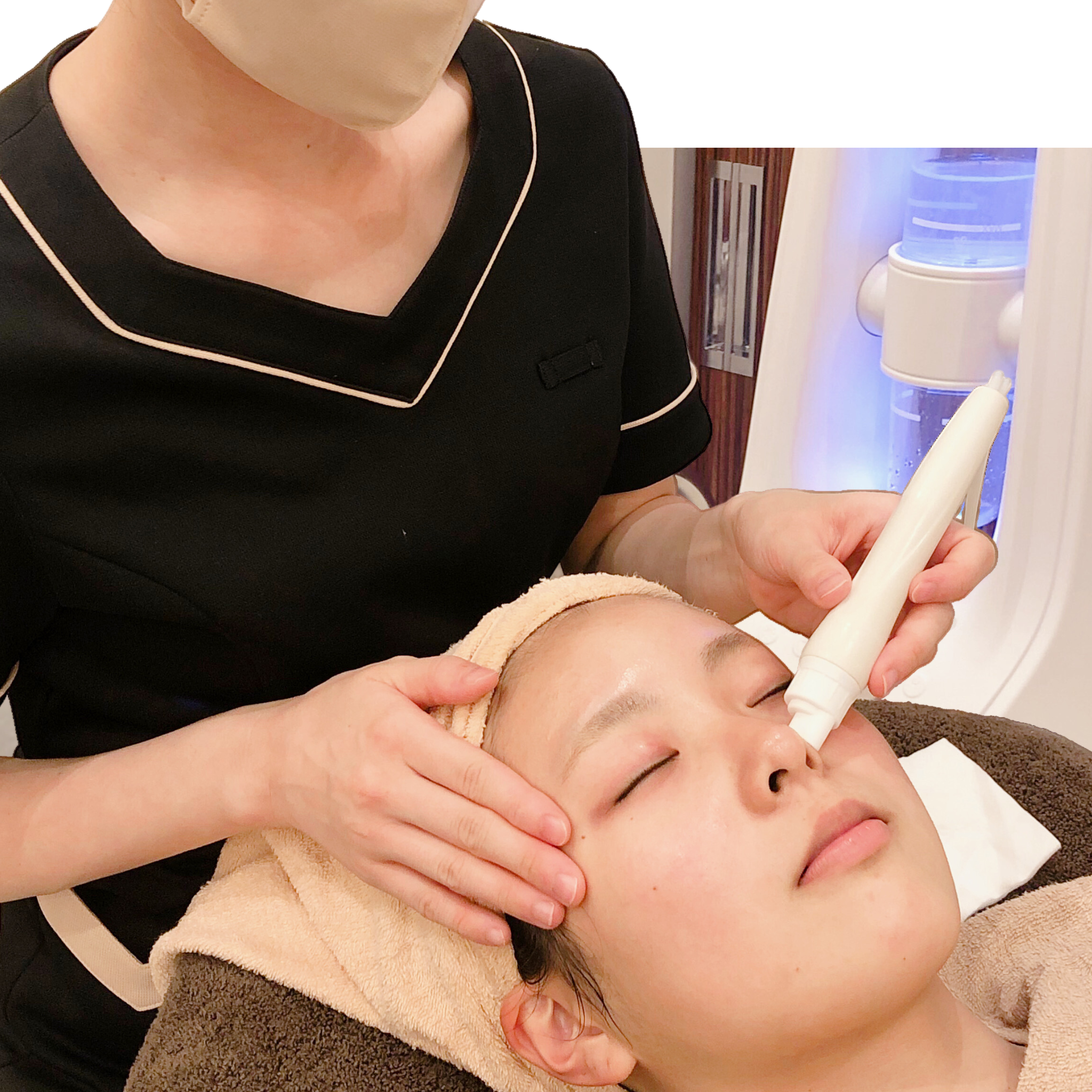 水素水を吹き付けながら同時に吸引をして、不要な角質や毛穴の汚れを落とすディープクレンジングです。